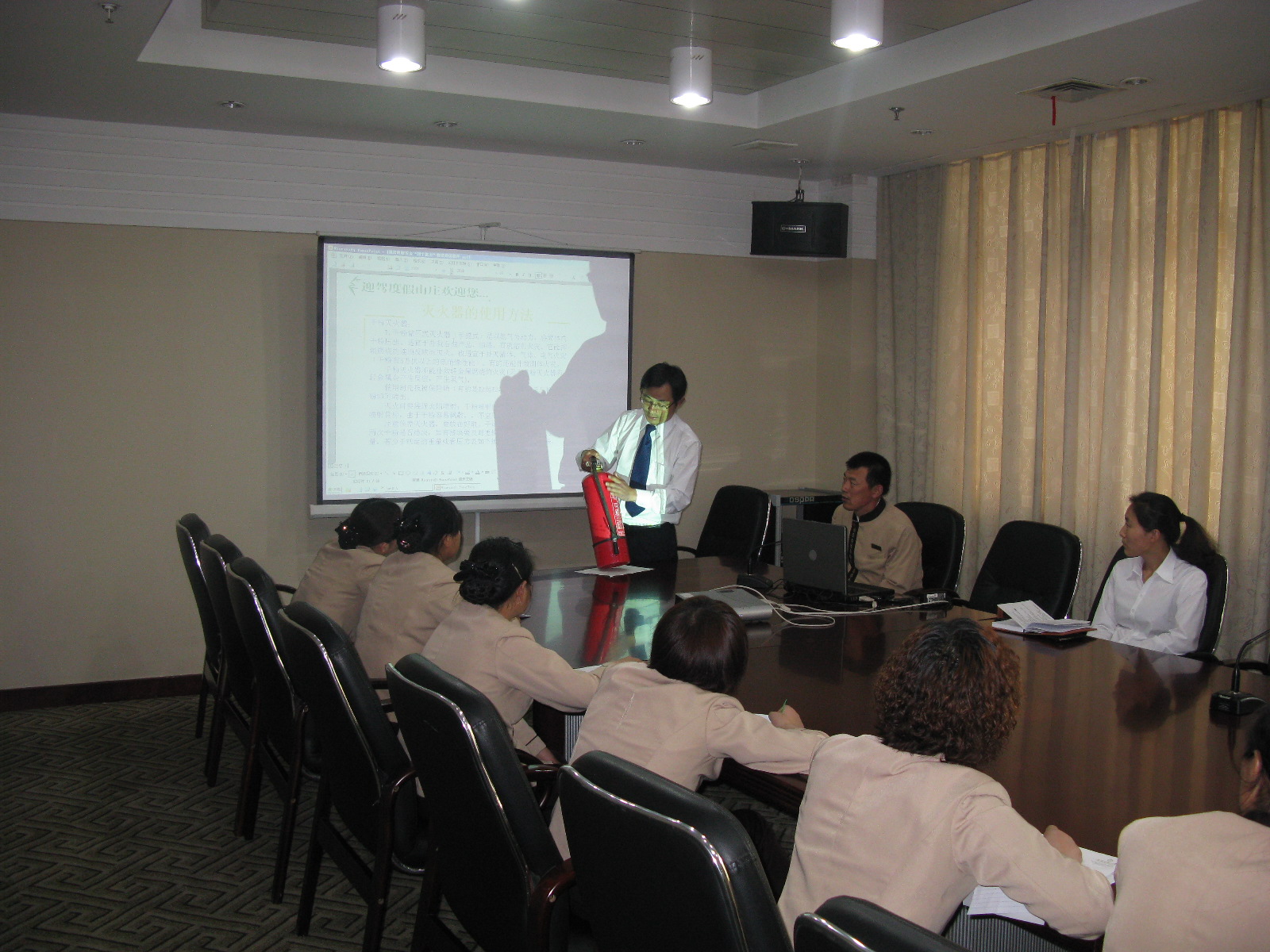 为加强员工消防安全意识,普及消防知识,提高发生突发事件时的自救、组织疏散及应变能力,山庄房务部于4月17日对新员工组织开展了消防安全方面的专项培训,此次培训由工程部经理、山庄安全管理专员王爱国担任讲师。